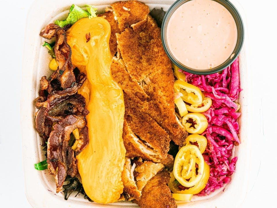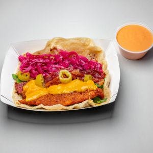 beef bacon, green papaya slaw, shipka peppers, Wolf Ketchup®