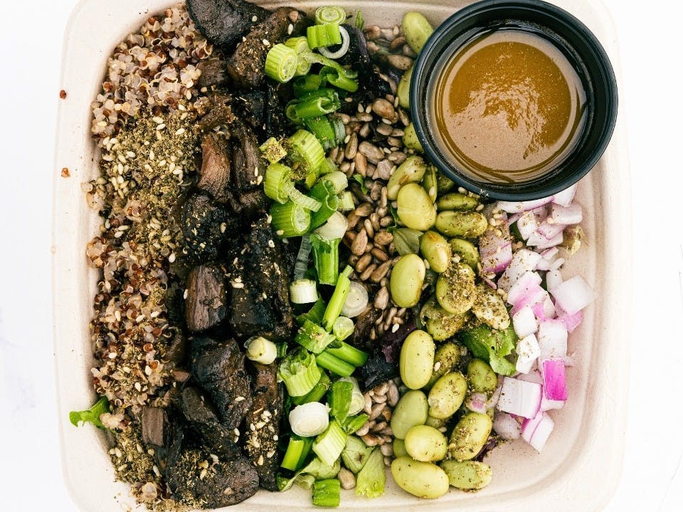 grilled portobello, shallot, edamame, scallion, za’atar, citrus-sumac vinaigrette